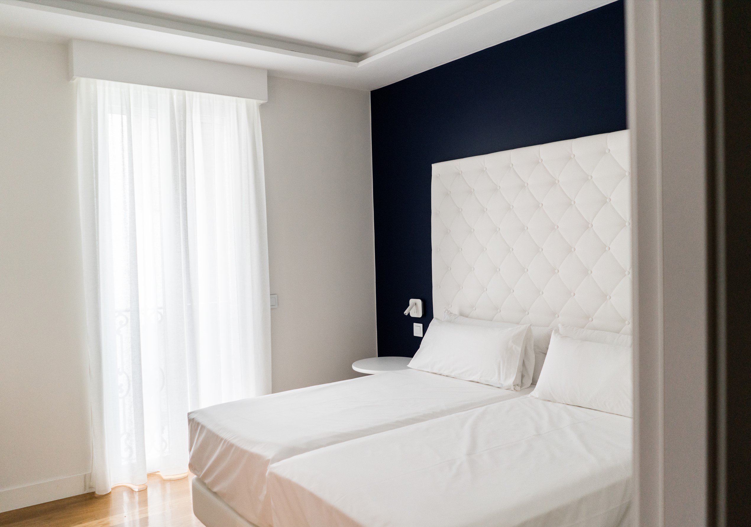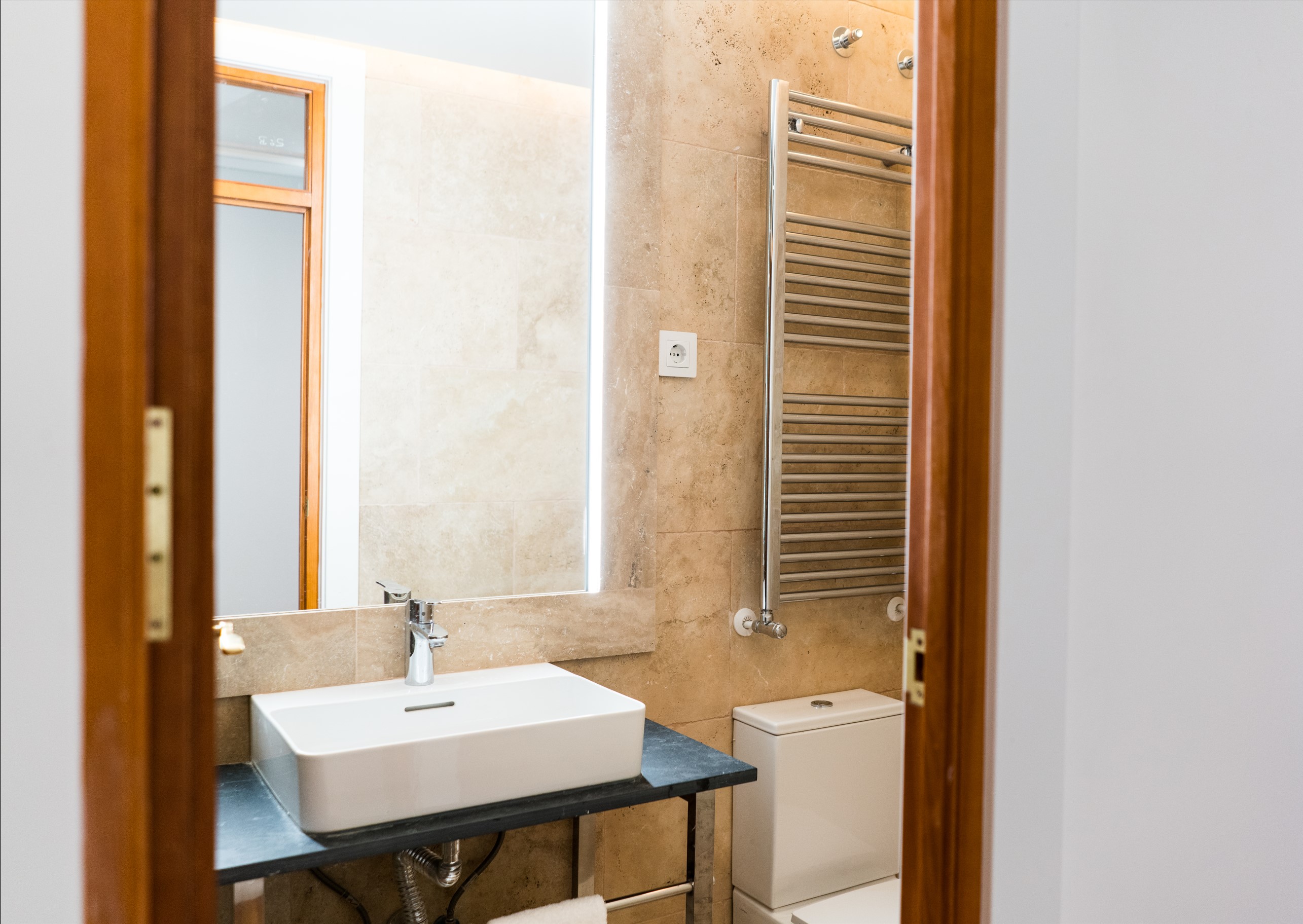 Nuestras suites, de uso individual, disfrutan de baño privado con ducha, cama de 120 con su canapé abatible para un extra de almacenaje, armario visto y escritorio y aire acondicionado.